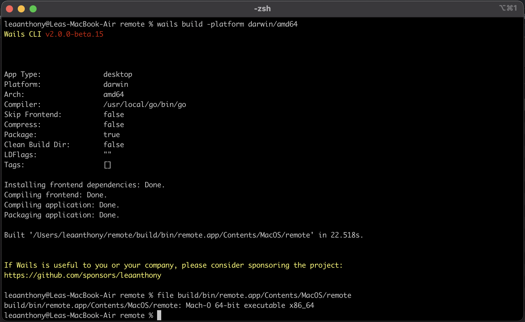 Like the declarative approach to the API, the build system was created to hide the complexities of building a desktop application. When you run wails build, it does a lot of things behind the scenes: